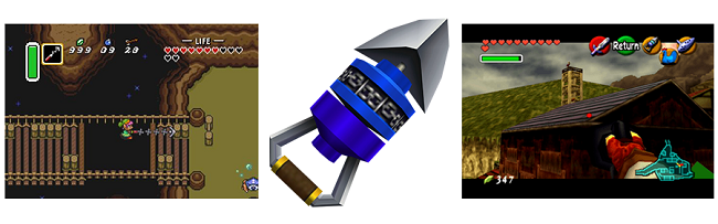 What makes the Hookshot such a fun and interesting item is that it is extremely useful, but is almost more of a tool than a majestic weapon. While you need the mighty Master Sword or the Light Arrows to defeat Ganon and win the game, the utility of the Hookshot and its ability to reach new places, access new areas, and effect your environment in new and unique ways makes it an invaluable item as you progress the game. In a lot of ways, you can almost classify your progress in each game the Hookshot is in by what the game was like before getting the Hookshot and then after getting it.