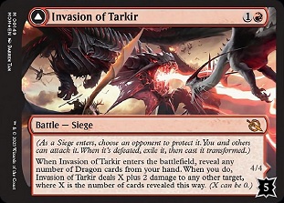In a lot of ways, these battle cards play sort of like reverse-planeswalkers. Rather than casting a card that will aid you that you need to protect that your opponent can attack, you are casting a card that your opponent needs to protect. This is super interesting gameplay-wise because of how you're altering your opponent's plans for the game - some decks just aren't meant to try and defend a permanent or produce good blockers and this puts them in a nice squeeze.
