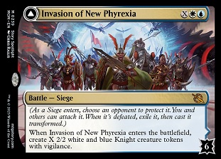 Lastly let's check out the major story beat Invasion of New Phyrexia, which has the distinction of flipping over into a planeswalker, which is quite exciting.
