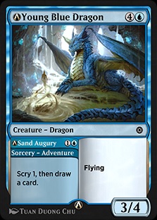 While Young Blue Dragon was one of the "best Blue" commons in the set, the overall quality of the Blue commons did not make this a glowing review. While Young Blue Dragon is an easy two for one on an adventure creature, skipping turn two to draw a card and then casting a 3/3 on turn five just doesn't hold up well against either the very low to the ground aggressive decks, or the decks looking to go huge with things like Dread Linnorn.
