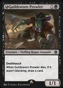 Guildsworn Prowler is still a decent blocker in the vein of Underdark Basilisk, with a bit of upside for sacrifice effects, but this is a major step down the pick order for what was once a top common.