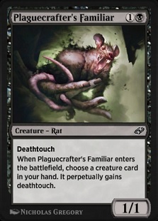 The catalyst for the deck is the interaction between Plaguecrafter's Familiar and Goblin Chainwhirler, helping to replicate a combo that has been seen a few times before in a few different formats. Plaguecrafter's Familiar is able to give Goblin Chainwhirler deathtouch while it's still in your hand, making for an amazing curve against any creature deck. But that's not all! It also interacts extremely well with Bonecrusher Giant, as it gives Stomp deathtouch too! And when you cast that Bonecrusher Giant it will also have deathtouch. Grim Lavamancer brings up the rear as a third great target for deathtouch.