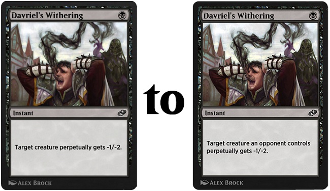 There are five cards being nerfed and buffed, but the most important is Davriel's Withering.