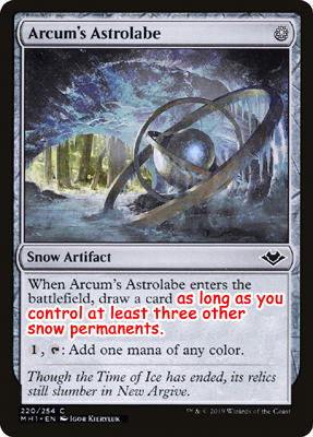 Like Veil of Summer, Arcum's Astrolabe suffers from the 1.5 mana problem. At one mana, as we have seen, Arcum's Astrolabe is a fairly broken enabler that has transcended all formats it is legal in. At two mana, it is Prophetic Prism and is borderline playable (although to be fair Prophetic Prism effects have done well at multiple points). There really isn't a middle ground. The fact is that if Arcum's Astrolabe was literally just a one mana artifact that did nothing and drew a card when it came into play, it would see a large amount of play because of how much synergy that provides. But if you remove the card draw, it becomes the unplayable Mana Cylix.