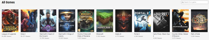That picture was taken February 12, 2013, at about quarter to two in the afternoon, EST, but it’s pretty representative of Twitch at any given time—a lots of people watching League of Legends, Dota 2 (whatever that is), Diablo 3, World of Warcraft, and a game called Path of Exile that, were I to pick it up, I would only ever be able to call Path to Exile.