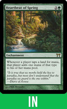 The one change that I will make in this area, is to swap out Dictate of Karametra with Heartbeat of Spring. In my opinion the Flash ability is not worth 2 mana, and this change allows players to play this effect earlier which is in line with our current focus on sculpting the early game.