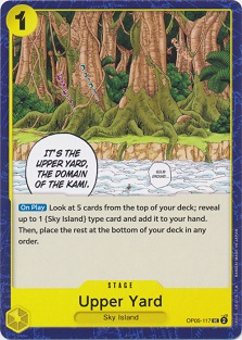Unlike Arlong, this leader decided to stay within the Yellow color instead of dipping into another. Kalgara alone allows us to cheat out Characters within the Shandian Warrior character type while also rewarding your efforts by adding a card to your hand from your life cards; a high risk high reward approach after playing a character without utilizing any of your DON!! on the field. The ability to be able to reserve DON!! And still play characters from our hands can be VERY resourceful. This allows us to hold up Counters such as Burn Bazooka, El Thor, and "The Earth Will Not Lose!" when it comes time for your opponent to swing into you. You could even go as far as during your turn, swing in with Kalgara, cheat out Wyper with leader ability, search into an upper yard, grab a sky island character and then put out Enel for quick rush damage toward your opponent.