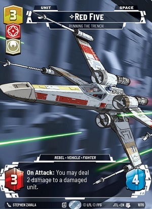 Luke Skywalker is a leader that, you guessed it, wants you to ATTACK. But... not with Vehicles. Luke Skywalker's leader ability is "Exhaust this leader: If you attacked with a Fighter unit this phase, deal 1 damage to a unit." In Aggression, 1 damage adds up to the elimination of your opponent's units... Even so, Luke Skywalker has an Epic action that allows you deploy this pilot either as a Leader Unit or a vehicle upgrade as long as you have 6 or more available resources. Luke's leader unit is a vanilla 5 power 6 health leader unit, however his vehicle upgrade is more than worthy of deploying. As a Vehicle upgrade, Luke Skywalker's abilities read as "This upgrade can't be defeated by enemy card abilities. Attached unit is a leader unit. If it's a fighter, it gains: 'On Attack; You may deal 3 damage to a unit.'" and provides the upgraded unit with +4 power and + 5 health.