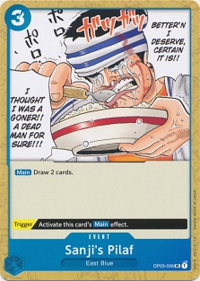 However, they are only two cards that form the skeletal structure of the Nami Deck. What should the rest of the Nami deck contain? A good selection of Events such as Sanji's Pilaf, Gum-Gum Giant Gavel, Usopp's Rubberband of Doom, White Snake, and Impel Down All Stars, that's what!