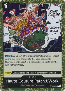 Kuzan serves as a staple mid-range character who has an On Play and an On Attack ability. With a cost of 4 DON!! and 5000 power, Kuzan's On Play will draw you a card and then when he attacks he will give an opponent's character -4 to their cost. Kuzan replacing himself On Play is great! But why do we care about your opponent's card cost if their character is already on the field? Excellent question. All of Black's removal pieces care about the cost of your opponent's cards, the same as Green's Removal... but we will get to that later. You will have Characters and Events that say things such as "K.O. A character cost 4 or less" or "K.O. a character with a cost 2 or less" or even additional benefits from cards such as Haute Couture Patch Work which states if your opponent has a character with cost of 0 then that character will not refresh on your opponent's next refresh phase". While not a Meta card, there is an incentive to ensure a character is down to zero cost. Kuzan helps enable removal pieces and additional card effects within Black decks in the OPTCG.