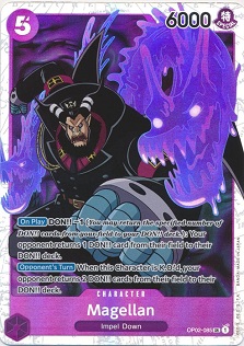 Besides our main character, let's go over the Warden himself. As literally poisonous as Magellan is, On Play Magellan causes both you and your opponent to return one DON!! back to the DON!! deck and on K.O. forces your opponent to return two DON!! to their DON!! deck. Talk about DON!! manipulation! A 6000 power character that disrupts your opponent's DON!! on play and on K.O.? Nothing but value from Magellan.