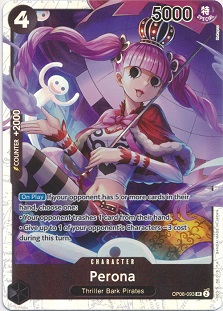Although Rebecca may fall to a lot of Red removal due to her 0 power, she brings a lot to the table and sees play in decks led by characters like Rob Lucci and Gecko Moria.