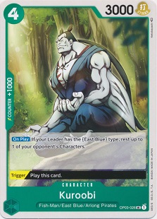 Arlong stops your opponent's leader from attacking for a turn when played, while Kuroobi's ability allows you to rest any character on the field without limitations. Kuroobi doesn't require a specified cost, power, or card type. You could rest a powerful 10-cost Yellow Ace, for example, as soon as Kuroobi's ability resolves. Arlong, as a character, is a powerful surprise alongside an already potent 7000 power Arlong leader swing. However, Arlong's leader ability isn't limited to the Fishman card type. You can also target characters like O-nami, Kikunojo, Nekomamushi, Sanji, and Cracker.