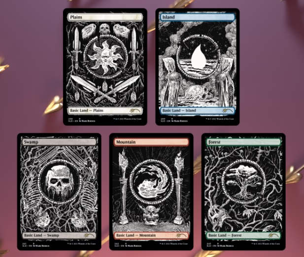 Available for a short time in February with the Valentine's Day-themed superdrop, these lands were meant to really accentuate that heavy metal aesthetic. I myself bought a pair of foil ones to go into my all-foil Sharuum the Hegemon deck, and these are perfect for a list like this as well. There's lots of great artwork for the cards in this deck that wouldn't be terribly out of place for bands such as Cannibal Corpse or Emperor or Death. It ties up is, in general, a stylishly flavorful home run.