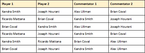 Now that we have our decks laid out, let's have a look at what you can expect for matches and commentators: