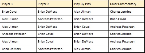 Wow what a lineup! While I'm sure you all are tremendously excited to see the matches play out tonight, I imagine you're wondering one thing: who is Charles Jenkins? Why, he's MTGO grinder Entropy263 (or otherwise known as Birbman263 on Twitch) and he'll be filling in for myself while I'm off at GenCon this weekend! For those unaware, Charles was originally one of our players, but scheduling conflicts made it not work out. As such, we're excited to bring him on for this week to help us out in an effective manner!