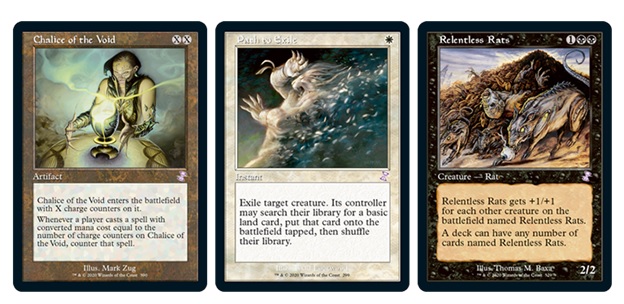 Now we have Time Spiral Remastered which is playing largely by the same rules. We don't know too much about it other than it's the three sets of Time Spiral, Planar Chaos, and Future Sight all condensed into one. What we do know, however, is that this time they're adding in the separate Timeshifted sheet that Time Spiral had, but rather than featuring the same old cards - we're getting all new reprints in the old frame! So far, we know of Chalice of the Void, Path to Exile, and Relentless Rats all in that glorious old border.