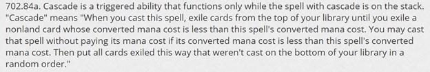 That's a lot of words to say that Cascade works in a more intuitive, and less abusable, way. No more stopping at a 2-drop only to cast a 7-drop. This is a win for the format because having eight cards that cheat out a seven-mana planeswalker is not healthy for the format.