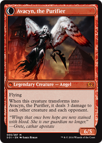 Let’s be honest: Avacyn, Angel of Hope (from the original Avacyn Restored) was a bit too good for regular Commander games. Sure, she cost 8 mana, which basically took her out of Standard contention, but even in mono-white, ramping to 8 isn’t that hard, and once you have her, everything you have is indestructible. That’s crazy. Meanwhile, her return in Magic 2015 as Avacyn, Guardian Angel was a bit underwhelming. She crushed it for me that time I opened her in my Sealed pool, but as a commander, or even as part of a ninety-nine, she’s just not worth it—not enough actual damage is thrown around, and 7 mana is a lot for that second ability. We have better things to do.