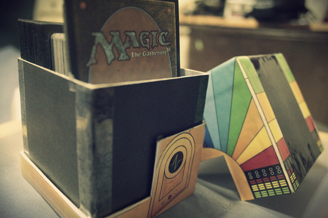 So, I might have a small problem with custom deck boxes. This custom deck box features French electronic duo Daft Punk. Careful craftsmanship was put into the box. For example, the colors of the helmet are spot on. The only thing that disappoints me about this is that there aren’t any other photos. I know I would have loved to have seen more photos of this awesome deck box. In the meantime, I’m just going sit back, enjoy looking at this deck box, and try to get the song Get Lucky out of my head.