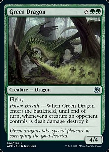 The uncommon evil Dragon cycle from Dungeons and Dragons: Adventures in the Forgotten Realms is all pretty awkward. Who exactly is salivating at this implementation of an iconic Green Dragon in competitive Constructed: