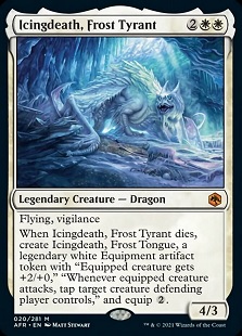 I imagine that if this becomes popular, it'll slot in where people are playing Legion Angels or Gods of Battle right now... Icingdeath is in the same zone size- and mana-wise; and the decks that like those cards - full already with creatures who could loot the body of a dead Dragon for a magic sword - all appreciate a tiny bit of card advantage.