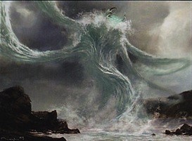 I also understand the difficulty in showing a card’s full effect. Whenever a card has more than depiction, when writing the art description, you have to choose. It’s not one Clone or a group of Clones, all looking at each other in a Mortal Kombat circle. We don’t need to be hit over the head, so keep it simple. It’s a blue card, so make it a blue thing, except two of them. That point is clear. While I think there’s a bit too much water represented, I think the image is a success and could be a fantastic promo card in the future due to the open-ended art description. It doesn’t need to be flying fish creatures.