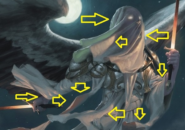 On a technical execution level, Tyler’s drapery usage here is incredible. I like digging around on DeviantArt and ArtStation every Sunday, just to find Magic fan art and good tutorials, like the one above. The wrinkles on this angel switch from hard to soft to stiff in such rapid succession. The tension changes on the same type of cloth, integrating with light simultaneously is incredibly difficult. Painting the angel in daylight would mitigate much of the difficulty, but it wouldn’t give the emotion, and dread of an angel coming to smite disbelievers.