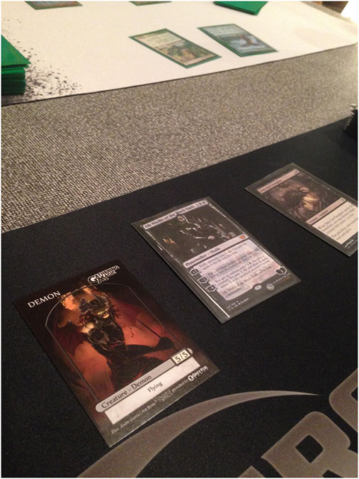 So, this sums up both decks against Terese’s G/U deck. It turns out that Rhystic Study or recurring land-fetch spells allows for nearly every game hitting Loxodon Warhammer for a cheap, flyover win. It was absurd how efficiency and basically an extra fifty cards worth of commissions utterly changes a deck.