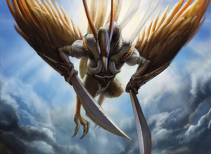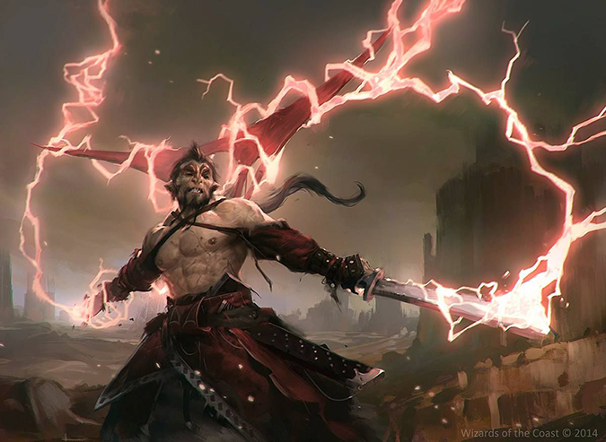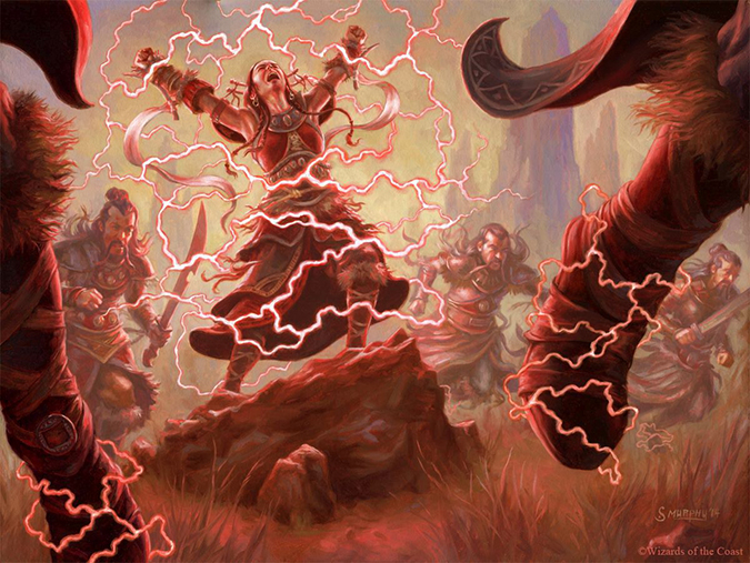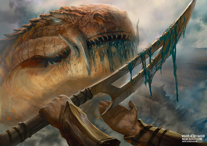 A lot of people asked me about this painting on Twitter. It’s a book-cover composition, plain and simple. It exudes power from the fact that it’s a mythic rare card. That “power” added to an interesting focusing element of the piece arrives to a successful image. It actually takes you a second or third glance to notice the motion blur he used in the image. That’s strength in finishing details!