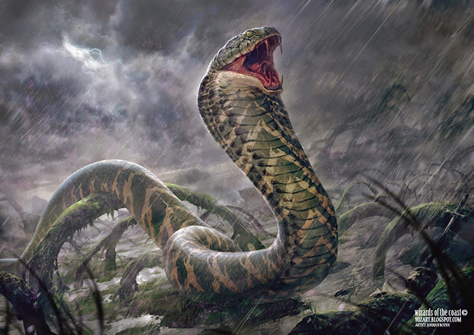 I like Burdett’s monsters. They’re all “rawr,” and the Magic community seemed to like him when he broke in. When he painted this giant fish, people lost their collective minds. It’s a giant goldfish—it’s basically 2015’s version of the Melissa Benson fan favorite Segovian Leviathan. While branding and style guides prevent much of the wackiness, occasionally, a giant goldfish is on point. If you give a commission like that to a monster guy, he can give you immensity and a restraint in not showing too much. I look forward to seeing his prints of this card artwork. It’s a beautiful artwork.