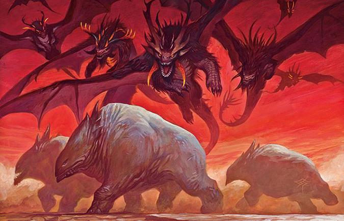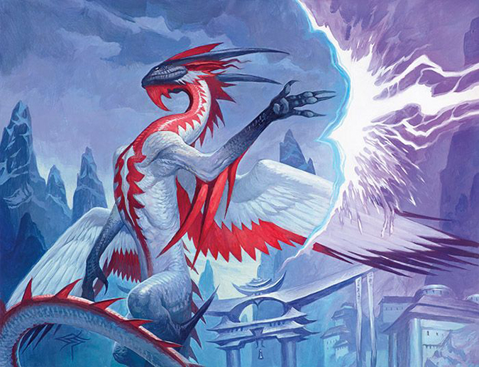 In case you missed it, yes, it is intentional to have the Dragonlords in flight in Fate Reforged and landed or on the ground in Dragons of Tarkir. I thought a downed dragon was a dead dragon. I could only kill dragons in the AD&D world of Tenne when they exhausted their breath weapons. It’s not so much that they’re lazy, they’re just lords. Like food critics, they don’t have to eat everything if they don’t want to. They can spew fire if they want to; they would just rather take part in leisure.