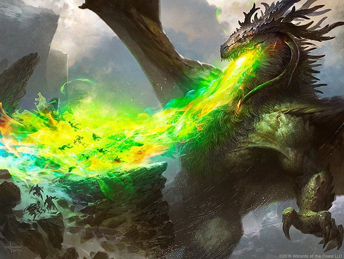 Each dragonlord could’ve each had two breath weapons/blessings of the dragonlords. The venom/acid is present in two black cards, and they make sense. This could’ve been a cycle that tried to work but just couldn’t, so it was scrapped. Sometimes, cycles don’t present themselves in mechanics, but art rarely lies because art descriptions are written early, and you can see remnants.
