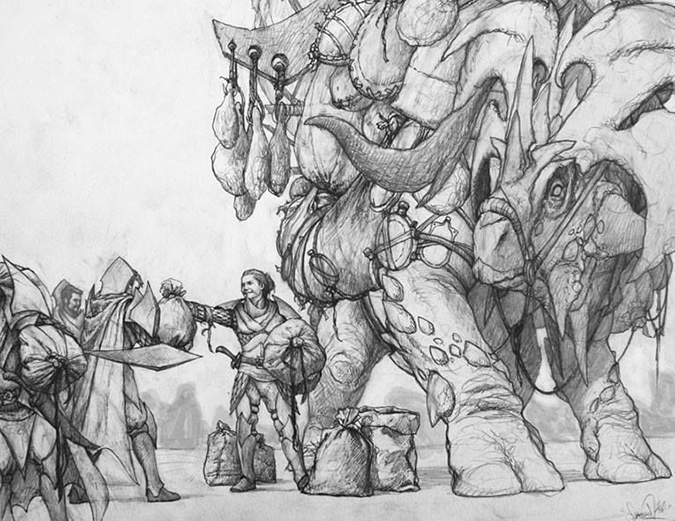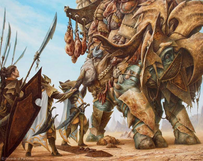 I’m not even surprised this is already sold. It reminds me of the living master’s James Gurney’s Dinotopia world. The stellar usage of weight in both gear and armor is mighty tough to show in a 2” × 3” card frame and read in a larger-than-average Magic painting. It’s a feast for the eyes to examine all the stuffs in the image. Remove Magic from this piece, and it’s still a fantasy art image of value. It’s Filip’s best thus far in my opinion.