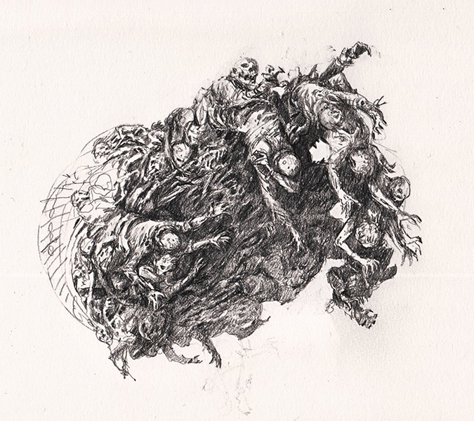 Helping Steve were also Daarken and Steve Prescott to make this new world. After their push (with help from a few other artists), Jeremy Jarvis pushed them to have a “first-person camera” that made you feel that you were there—the dread and terror itself was coming in on you.