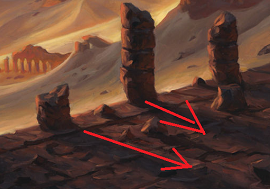 - Notice the light source coming from a high upper left, which informs all the sand dunes. It’s also a cloudy, likely sandstormed day.