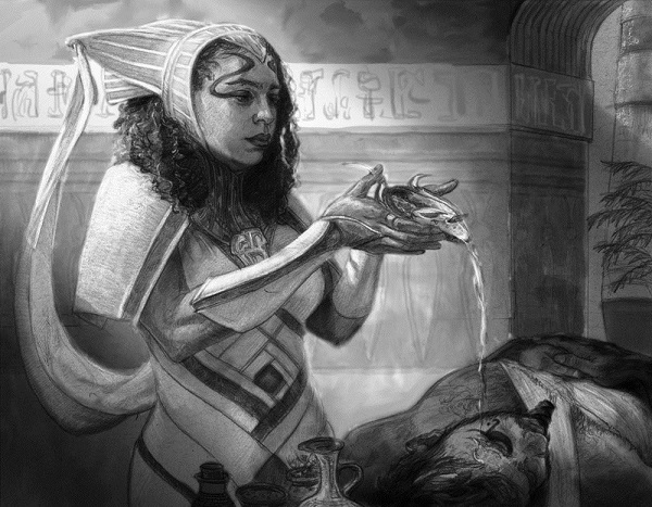 Akin to real ancient Egypt, if you visited Egypt or Amonkhet as echo of the past, the people shouldn’t live often past the age of forty. On Amonkhet it’s because they’re likely killed from a trial, public infraction, or a variety of other terrible occurrences outside the Hekma.