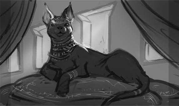 What Bastien added was silhouette to Oketra. The Chase Stone version is shown from below in a power stance. Instead, Bastien calmed down her pose, and showed a realistic looking high waisted pencil skirt that I see hundreds of times in downtown Minneapolis, except this time it was on a cat queen. The term for a female cat is a queen.