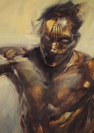 Tyler here paints the vizier in clear detail, but lets the two snake guards fade into their respective light. We can nitpick about whether the mechanical Green snakes should be Black, and thus allusion to black guards as servants, breaking the one model of Amonkhet with mummies doing all servile work. Perhaps the snakes were supposed to be mechanically Black, to match their color originally.
