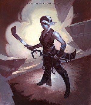 Yes, artists will paint elves from full humans with elf ears to almost insect-like, borrowing from Warhammer Fantasy. With each time Nissa is depicted, I look to see if reference was used for Yolandi Visser, a friend, or pushed hard into elfish territory. Here, she looks like a human, almost like a cosplayer with well applied ear prosthetics. This is a good thing and here’s why: it breathes life into cosplayers work. It makes it more realistic, more doable to create.