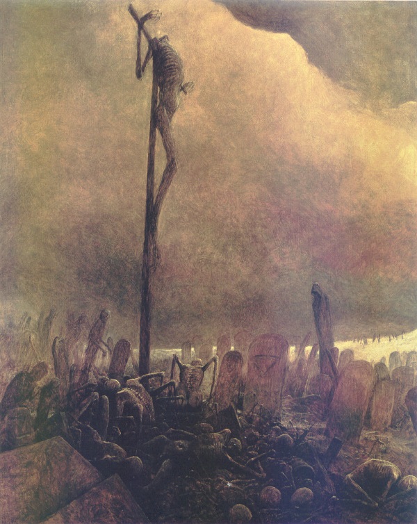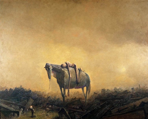 I think of Zdzis?aw Beksi?ski, whose works have spurred countless studies by current Imaginative Realism students. He also has a show going on until September 5 in Chicago. I’d definitely go if you’re close. Guillermo del Toro owns some of his paintings and once you look, you’ll see the haunting realism, the fantasy mixed with deeply emotional art.