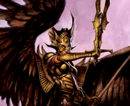 What a perfect composition. Even the clouds are balanced around the god’s head. It’s busy on bottom and quiet on top. The light focal point pushes us to the middle of the artwork and we’re rewarded by looking at the decimated Hekma in light blue, dissipating to nothing. A similar effect is of translucent wings is done with minimal effort yet maximum recognizability.