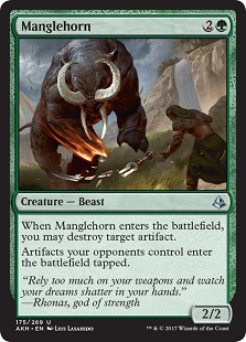 Samut just gave you the speech you asked for, giving you something to fight for whether you’re a skeptic or still a True Believer. Rhonas, the Green snake god, is killed and they have a rallying cry now against Nicol Bolas. I wouldn’t argue with her, and considering all my buddies from the same crop are going to join her, I might as well. This image has space for the Bolas horns but we don’t see them here. It’s more similar to the Mirrodin Besieged cards that reference the humans, the Mirrodin Pure, who had a chance against the Phyrexians.
