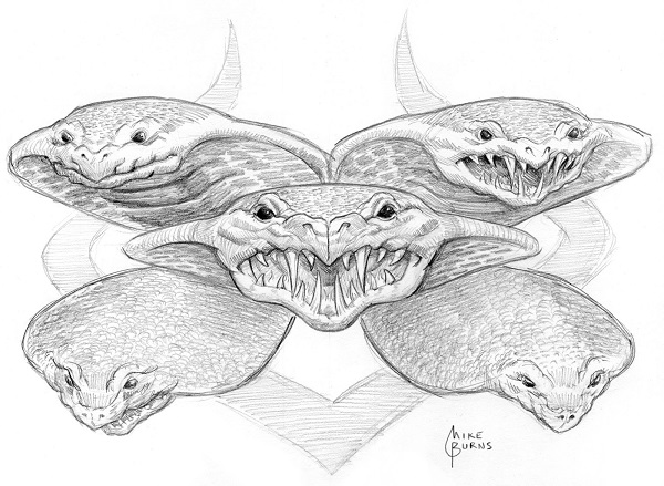 Again, you see it, it just doesn’t manifest so obviously. The following is masterfully created, the scene is just awkward. At sketch stage, this should’ve come through as awkward. Why it was chosen is baffling. It’s a prom pose, even with the 1980s disembodied snake head in the upper right.