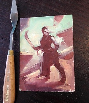 You may not know who Jeremy Wilson is from his Magic work. He only has one token previously an it was dynamite. It was the Kor Ally, which he had for longer than I would’ve thought including a color study, shown below. I have been getting into collecting really standout color studies from Jesper Ejsing and Jeremy might be added to that niche I’m examining. It’s often cheaper than a full painting and still gives you an original of rough paint, larger brushstrokes and raw. I find them fun to put up for people to guess and most are a lot more detailed than you would think.