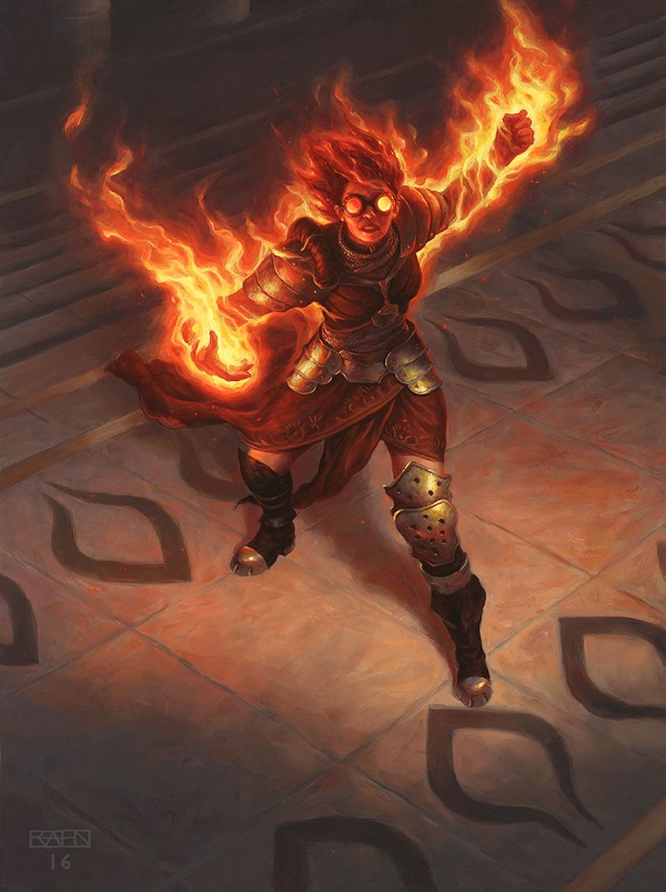 I'm shockingly surprised that they didn't include Gideon in some way considering he was the only one left with all of his irregulars perishing on Theros. This could be such an easy call back to that, connecting in the art descriptions, perhaps on the ground with the fiery circle around the person. That’s also forcing an art description, which is a cardinal sin.