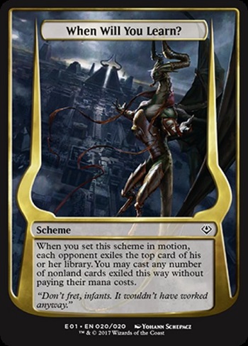 Even now, I find it hard to tell if people bought fewer Archenemy sets the first go around in 2010 or if they just printed fewer, trying to impact collectability as compared to the widely popular Planechase format. The idea was sound. The execution, especially flavorfully, didn’t quite fit.