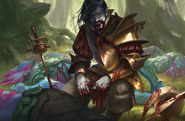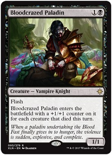Speaking of the vampires being foreign, the pointed ears are consistent in the vampires and we must wrestle with the obvious question, can elves be vampires? (The eyes are not, check out Bishop of Rebirth.) We have no footing that the pointed ears on Bloodcrazed Paladin and others make them elves, but we can clearly see the ears.