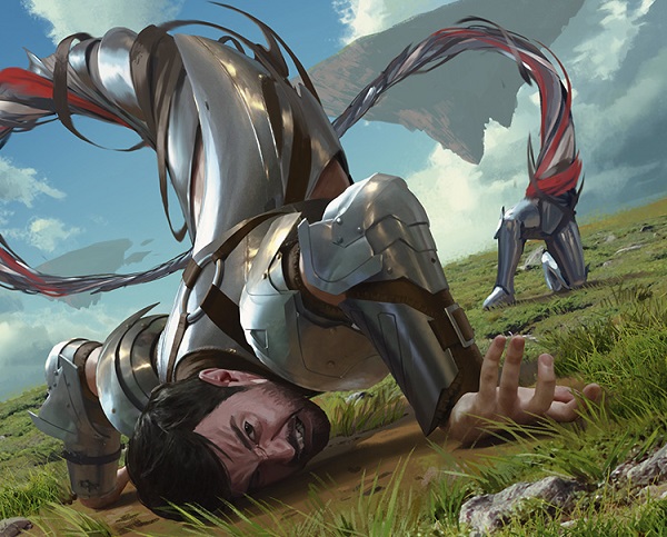 The name is needed for us, as players, to understand that this is the legendary Adriana, captain of the guard, who is undertaking this feat of indestructibility, as the card describes. The art doesn’t yell that it’s a woman. This is a good thing. I just wrote about the Tumblr, and in 2016, Magic artists just do it. It’s not even a big deal. The plate armor is just armor with only a few motifs that would even tip you off that this is a woman.