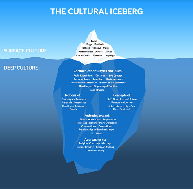 I came across this cultural iceberg at work, and it explains the overt versus covert aspects I think are relevant when returning to a set.